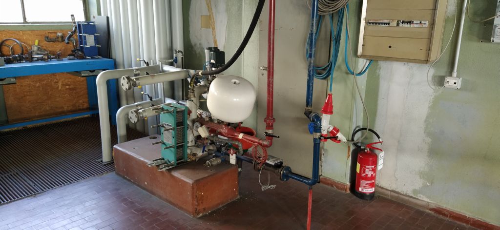 Sottostazione del teleriscaldamento con scambiatore a piastre e strmentazione di misura.