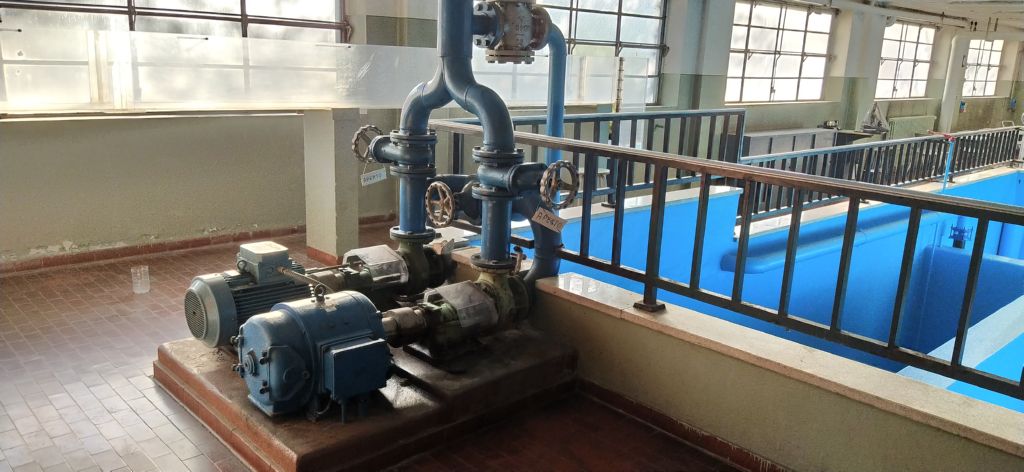 Pompe centrifughe in parallelo per l'alimentazione dei due impianti idroelettrici (Pelton e Francis).